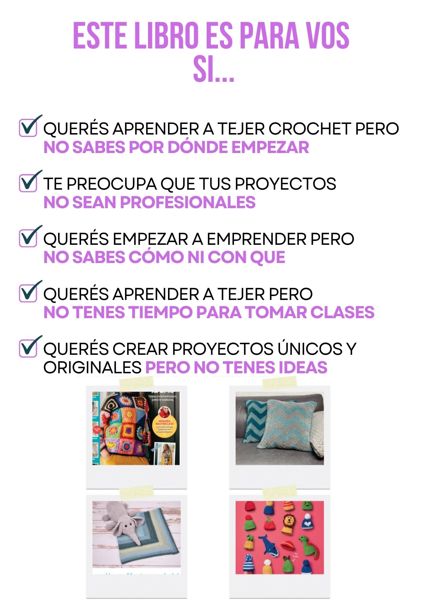 Absolutamente. El libro está diseñado para tejedoras de todos los niveles, incluso para principiantes. Incluye explicaciones claras, fotos, consejos y ejemplos para que no te pierdas y disfrutes el proceso.